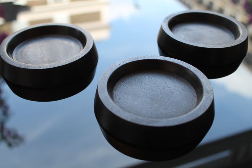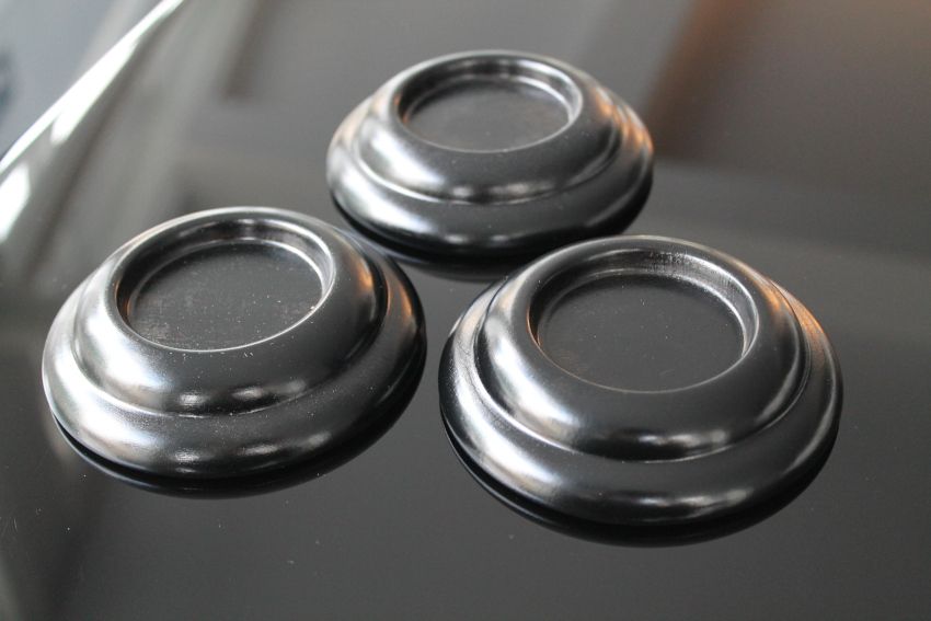 Elegant looking castor cups in black wood for grand pianos. Internal diameter 80mm
