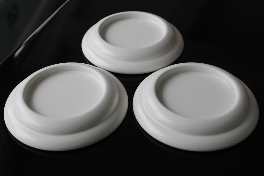 Unpolished wood castor cups - hardwood cups ready to be stained and polished as required and complete with separate felt backing to attach afterwards. Suitable for grand or upright pianos. Internal diameter 65mm, external diameter 90mm.